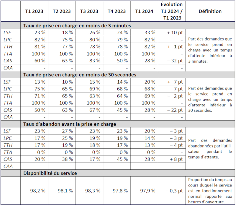 Les données d’utilisation du 1er trimestre des deux centres-relais des conversations téléphoniques par applis mobiles publiées par l’Arcep confirment l’abandon des locuteurs en Langage Parlé Complété (12 en moyenne mensuelle). En revanche, le nombre de pratiquants de la Langue des Signes Française (3.609) poursuit sa progression, de même que les utilisateurs de la transcription automatique (17.704 conversations soit 64% de plus en un an). Si la durée globale des conversations a augmenté de près de 28% depuis le 1er trimestre 2023, les utilisateurs ne consomment qu’une faible partie de leur forfait mensuel gratuit : 18% en LSF, 12% en transcription manuelle et 19% en mode automatique. Les centres-relais sont essentiellement utilisés pendant les horaires de travail, et peu en début de matinée, milieu de journée, soirée et le samedi matin, confirmant le caractère utilitaire de leur usage alors qu’ils ont été conçus pour les conversations privées ou interpersonnelles. La qualité du service LSF s’améliore avec un taux de prise en charge en moins de 30 secondes des appels en progression de 7 points (soit 20% des appels). Finalement, les centres-relais lancés en octobre 2018 demeurent utilisés par moins de 1% de la population concernée.