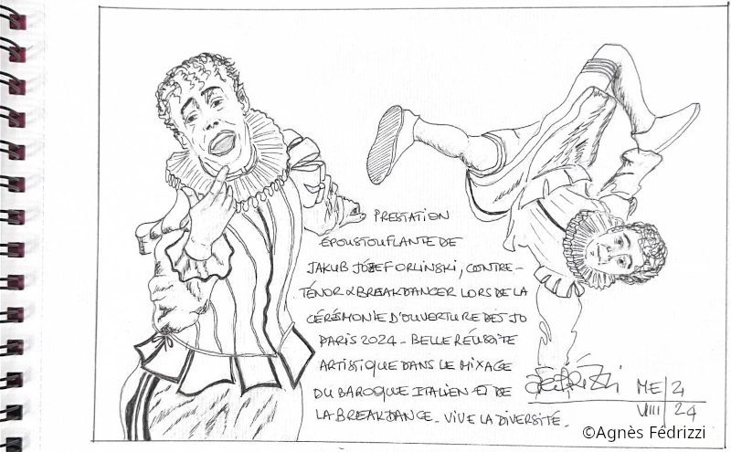 Prestation époustouflante de Jakub Józef Orlinski, contre-ténor et breakdancer lors de la cérémonie d'ouverture des JO de Paris 2024.