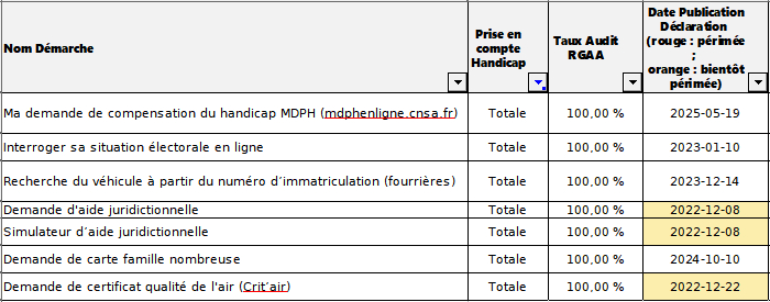 Les dernières données de l’Observatoire de la qualité des démarches essentielles montre une régression, avec une formalité totalement accessible en moins. Sur les 8 relevées en avril dernier, Choisir le service public est sortie du lot, et parmi les 7 autres, 3 risquent de le quitter prochainement du fait de l’obsolescence de leur déclaration de conformité. La présentation des résultats des 244 démarches a une fois encore été modifiée, classées en non conforme (72), conformité partielle (151) ou totale (7), à venir (7) et non numérisée (7). 32 formalités sont conformes à plus de 90% aux spécifications du Référentiel général d’amélioration de l’accessibilité (RGAA) soit 10 de plus qu’en avril dernier. Globalement, ces données témoignent du laisser-aller des administrations concernées alors que l’objectif gouvernemental d’atteindre d’ici la fin de l’année la conformité pour la moitié des formalités de l’Observatoire ne sera pas atteint, comme il est de règle depuis 5 années de promesses du même ordre.