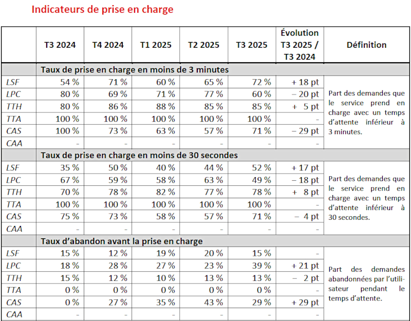 L’augmentation continue du nombre d’utilisateurs des deux centres-relais des conversations téléphoniques par appli mobile se poursuit, mais faiblement, selon les statistiques du 3e trimestre 2025 diffusées par l’Autorité de régulation (Arcep) : Langue des Signes Française + 0,6%, transcription manuelle + 2,1% et transcription automatique + 12,4%, pour un total de 6.338 utilisateurs en moyenne mensuelle pendant le 3e trimestre 2025. En revanche, le total des conversations baisse de 3,5% par rapport au second trimestre, essentiellement du fait de transcriptions automatiques moins nombreuses. Cela ne se ressent donc pas sur la durée totale des conversations, quasiment inchangée ; chaque utilisateur ne consomme, au mieux, qu’1/6e de son forfait mensuel de 3 heures de conversations adaptées. Le taux de prise en charge en moins de 30 secondes des appels LSF dépasse enfin les 50% (52% exactement), et atteint 72% en moins de 3 minutes d’attente, ce qui laisse encore une importante marge de progression même si le taux d’abandon est passé de 20% pendant le trimestre précédent, à 15% ; toutefois, la fiabilité du service en Langage Parlé Complété chute.