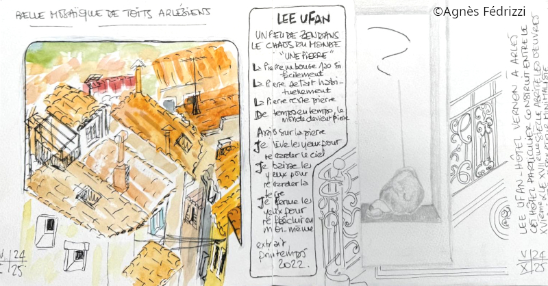 Belle mosaïque de toits arlésiens, et Lee Ufan dans l'Hôtel de Vernon