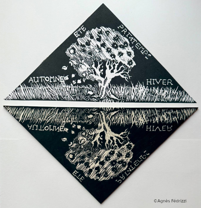 Dessin, gravure sur bois et impression en attendant d’être encadré !