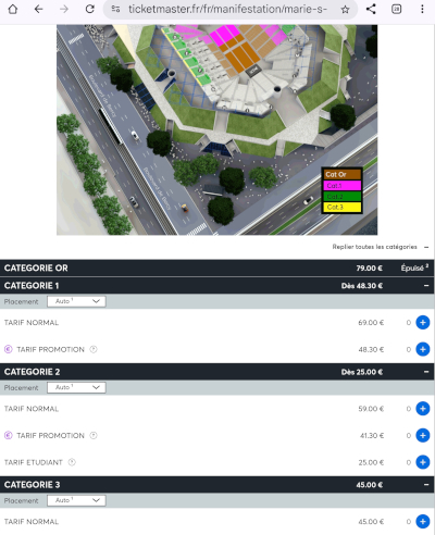 La billetterie Accor Arena, qui exploite notamment la salle omnisport de Paris-Bercy (12e), n’applique pas aux spectateurs handicapés les tarifs promotionnels. C’est ce que dénonce une spectatrice handicapée motrice à laquelle le tarif normal est systématiquement appliqué dans les zones dédiées aux personnes à mobilité réduite ; elles accueillent les spectateurs en fauteuil roulant, leurs accompagnateurs et les PMR qui souhaitent s’asseoir dans ces espaces sécurisés, à l’écart de la foule. « J’ai appelé mi-novembre la ligne téléphonique dédiée pour réserver des billets pour Marie s’infiltre le 20 décembre, avec un tarif promo à -30%, explique cette spectatrice. Mais Ticketmaster qui fait la billetterie m’impose le tarif plein à 48€ en disant qu’ils ne peuvent pas appliquer la promo aux places PMR. » De plus, les courriels reçus du service PMR semblent rédigés par un système automatique de bibliothèques de phrases et ne répondent pas à sa réclamation. Interrogée, la société Ticketmaster/Ticketnet renvoie vers Accor Arena qui n’a pas donné suite.
