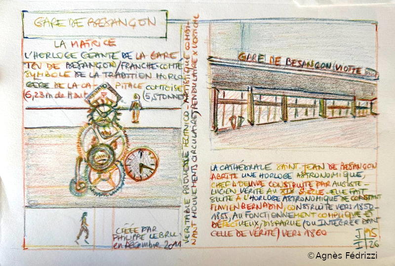 La matrice, horloge géante de la gare TGV Besançon Franche-Comté symbole de la tradition horlogère de la capitale comtoise (6,23 mètres de haut, poids de 5,5 tonnes), créée par Philippe Lebru en 2011. Véritable prouesse technico-artistique combinant mouvements circulaires, pendulaire et vertical.