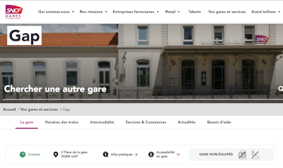 - La gare de Gap (Hautes-Alpes) n’est pas accessible bien que située sur la ligne SNCF desservant les Alpes depuis Marseille, la CGT et l’APF France Handicap demandant un changement d’ici les Jeux Olympiques et Paralympiques d’hiver 2030.