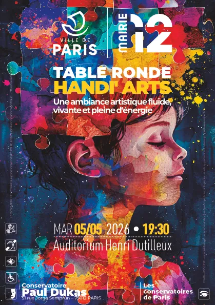 Handi’ Arts, table ronde autour du handicap au Conservatoire Paul Dukas. « L’objectif de cette soirée est d’échanger autour de l’expérience pédagogique et artistique sur le terrain. Nous souhaitons mettre en lumière les actions menées et rappeler également le besoin d’outils et de formation pour faciliter l’accès à la culture pour les personnes en situation de handicap. Un traducteur en LSF sera présent pour accompagner les échanges. » Lieu : Conservatoire Paul Dukas, auditorium, 51 Rue Jorge Semprún à Paris (12e). Au programme :