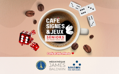 Café Signes & Jeux en LSF à la Maison des Réfugiés. « Envie d’un moment convivial et détendu ? Participez à un après-midi de jeux de société, de partage de gâteaux ou tout simplement pour échanger en Langue des Signes Française (LSF) , dans une ambiance chaleureuse et ouverte à tous.tes ! Que vous soyez senior ou jeune, Sourd·e, Entendant·e ou exilé·e, cette rencontre en LSF est l’occasion idéale de tisser des liens, échanger, et passer un bon moment ensemble autour d’un café ou d’un thé offert. » Lieu : Maison des Réfugiés, 10bis Rue Henri Ribière à Paris (19e). Organisé par l’Étoile Sportive des Sourds de Vitry (ESS Vitry), en partenariat avec la Maison des Réfugiés, située en face de la Médiathèque James Baldwin (pôle Sourd). Gratuit.