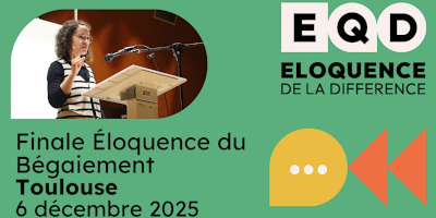 Grande Finale d’Éloquence du Bégaiement, organisée par Éloquence de la Différence à la MAC. « Notre programme « Éloquence du Bégaiement » vise à promouvoir l’art de la prise de parole en public pour des candidats qui bégaient. Pendant 8 semaines, les candidats que vous allez découvrir ont suivi le programme à travers des ateliers pratiques et des sessions de formation. Ils se sont entrainés et ont été soutenus par des bénévoles eux mêmes de tous horizons pour essayer d’atteindre la finale qui se déroulera devant un jury de professionnels. » Lieu : MAC, 1 rue Saunière à Toulouse (Haute-Garonne). Durée 2h30. Gratuit sur inscription obligatoire.
