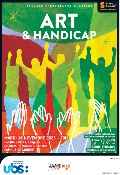 Art et handicap, conférence à la Faculté de Lettres. « À travers le parcours de la troupe Catalyse, emblématique du Centre National pour la Création Adaptée, cette rencontre exceptionnelle mettra en lumière le rôle fondamental des artistes singuliers porteurs de handicap dans le renouvellement des formes et des récits artistiques. L’occasion de revenir, également, sur l’histoire de la création du centre national, ses missions, et les œuvres qui ont marqué son évolution, tout en interrogeant les frontières de la norme et de la beauté dans l’art contemporain. Une invitation à évoquer les enjeux esthétiques et politiques de la création adaptée, et à découvrir comment la différence devient puissance créatrice, et comment ces artistes contribuent à écrire une nouvelle histoire de l’art, libre, audacieuse et profondément humaine. » Lieu : Faculté Lettres, Langues, Sciences Humaines & Sociales, Amphithéâtre Massiac, 4 rue Jean Zay à Lorient (Morbihan). Gratuit.