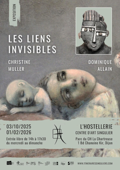 Les liens invisibles, exposition consacrée à l’artiste Christine Muller et à l’artiste Dominique Allain, à L’Hostellerie. « L’exposition explore ce qui relie les individus au-delà du visible : émotions, souvenirs, traces et impressions qui façonnent nos vies. Christine Muller utilise la peinture pour interroger la lumière et la mémoire, donnant forme à des fragments intimes. Dominique Allain, à travers la sculpture et la technique du raku, fait apparaître les marques du temps et de l’épreuve sur la matière. » Lieu : L’Hostellerie – Centre d’Art Singulier au Centre Hospitalier La Chartreuse, 1 boulevard du Chanoine Kir à Dijon (Côte d’Or). Tout public. Du mercredi au dimanche de 14h à 17h30. Entrée libre.