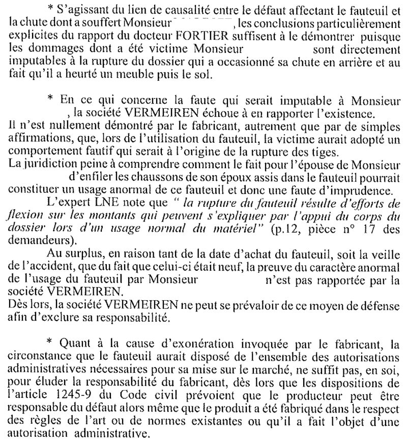 Extrait du jugement du tribunal de Saumur rejetant l'argumentation du fabricant Vermeiren