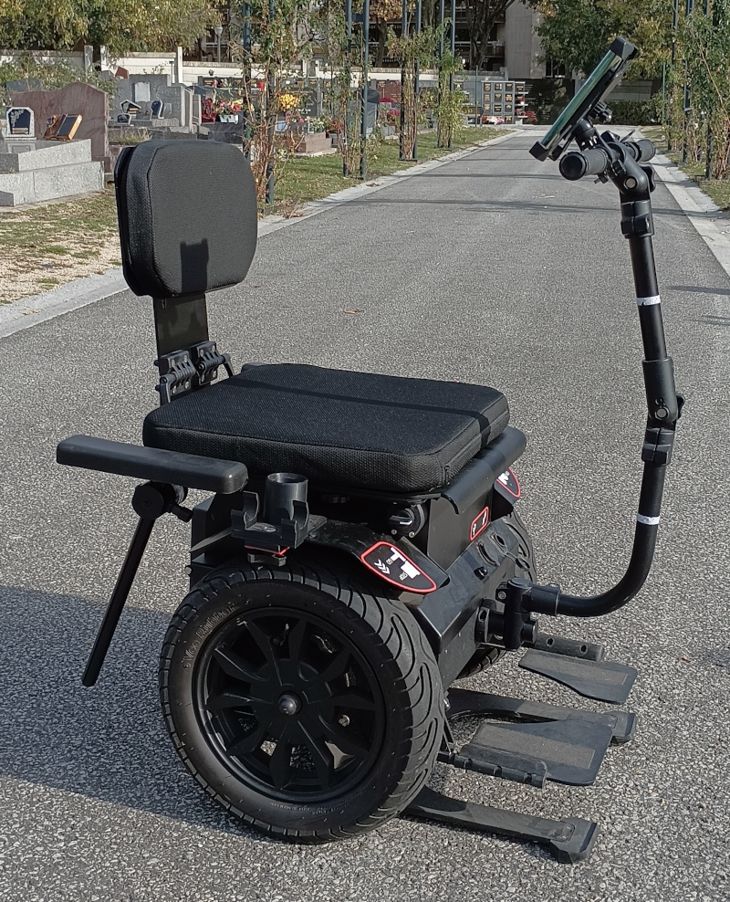 Présenté par ses concepteurs comme un fauteuil roulant nouvelle génération, le Gus est en fait un gyropode assis, l’un des deux modèles disponibles sur le marché français depuis la liquidation judiciaire, en avril 2022, du Nino [et outre la fabrication artisanale de l’association alsacienne Paramove à base de réemploi de pièces de Segway, lire ce reportage.] A la différence de son unique concurrent, le Genny ressuscité en 2024 à près de 17.000€ pièce, l’aspect fonctionnel, frustre, presque brutal du Gus s’accompagne d’un avantage considérable : un prix de vente tout juste inférieur à 10.000€.